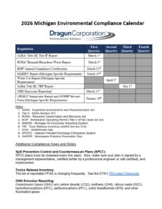 All of the tips below were reviewed by Matthew Schroeder, M.S., P.E. Matt is a senior environmental engineer at Dragun Corporation. Matt has advised industrial, commercial, municipal, and agricultural clients on environmental compliance for 30 years. Matt has defended violations under RCRA, SARA, CWA, and NPDES; prepared, reviewed, and implemented numerous emergency plans; and advised on discharge permitting compliance for a wide variety of industries. Matt is a frequent speaker, author, and expert witness. See Matt’s bio.